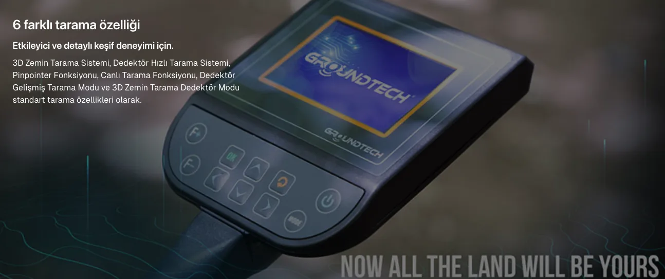 3D Zemin Tarama Sistemi, gömülü metaller, manyetik nesneler, mezarlar, odalar ve tüneller gibi yer altı boşluklarının tespitini, ölçümünü ve yerini belirlemenizi sağlar. Özel olarak hazırlanan Groundtech Portal - 3D Analiz yazılımı, manyetik (demir veya çelik) ve manyetik olmayan (altın, gümüş veya bakır) metalleri grafiksel olarak gösterir. Hedefin boyutuna (çapına) ve toprak yapısına bağlı olarak, 20 metre* derinliğe kadar ulaşılabilir.